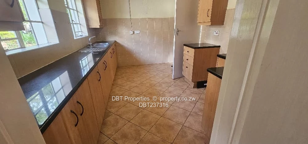 The property offers a good-sized kitchen and an open-plan lounge and dining area that opens onto a private verandah. Two of the bedrooms have direct access to the outdoor area. The flat is fitted with solar power and benefits from borehole water. The complex features an electric gate and 24/7 security, ensuring peace of mind.